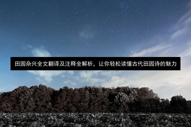 田园杂兴全文翻译及注释全解析,让你轻松读懂古代田园诗的魅力