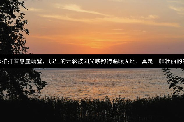 金沙江水拍打着悬崖峭壁,那里的云彩被阳光映照得温暖无比,真是一幅壮丽的景象啊!